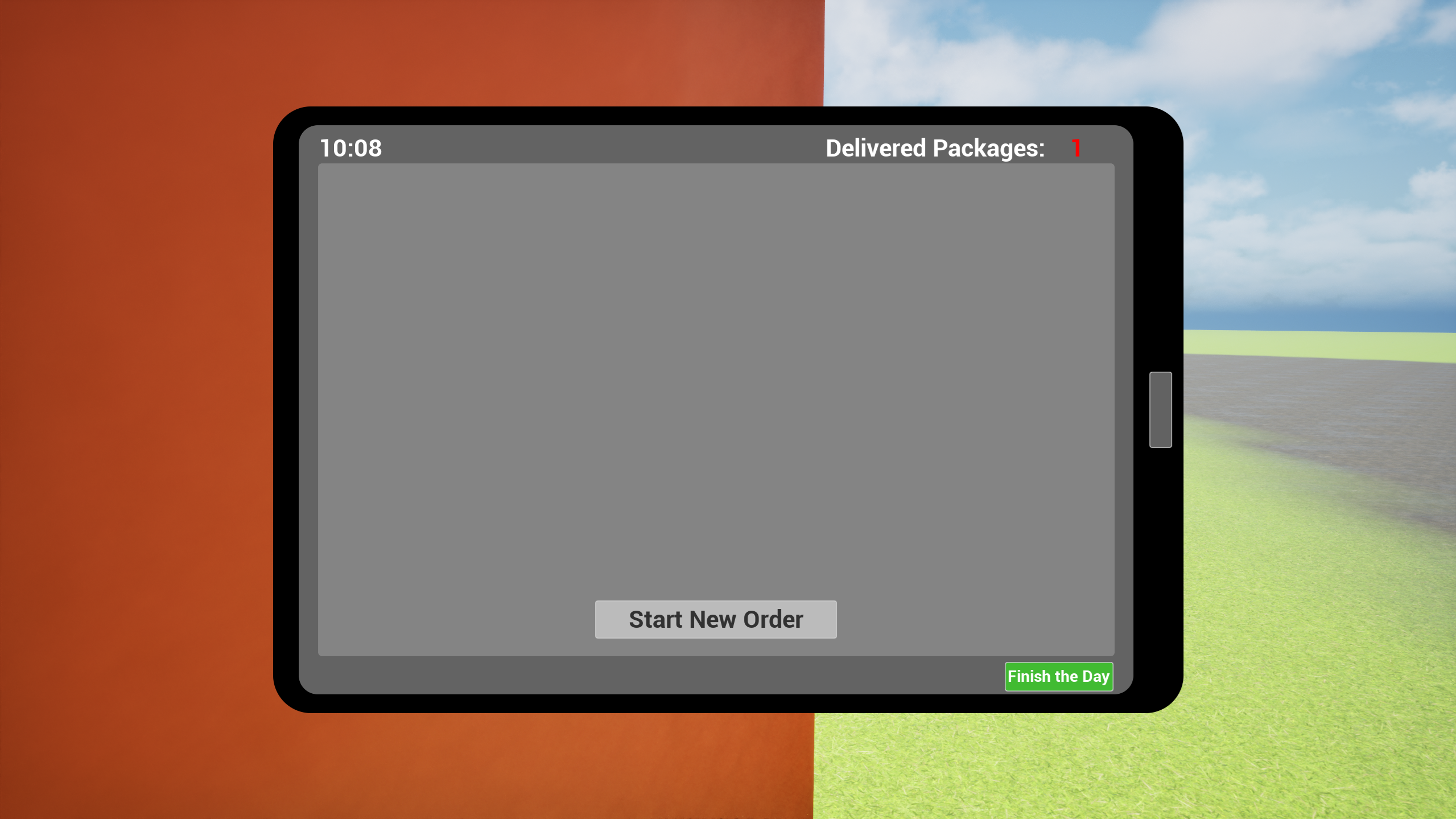 Delivery Simulator is a first-person experience focused on the mundane satisfaction of a courier's routine. Start your shift at the warehouse, accept orders on your in-game tablet, load packages into the van and drive to the destination — all within a single working day.