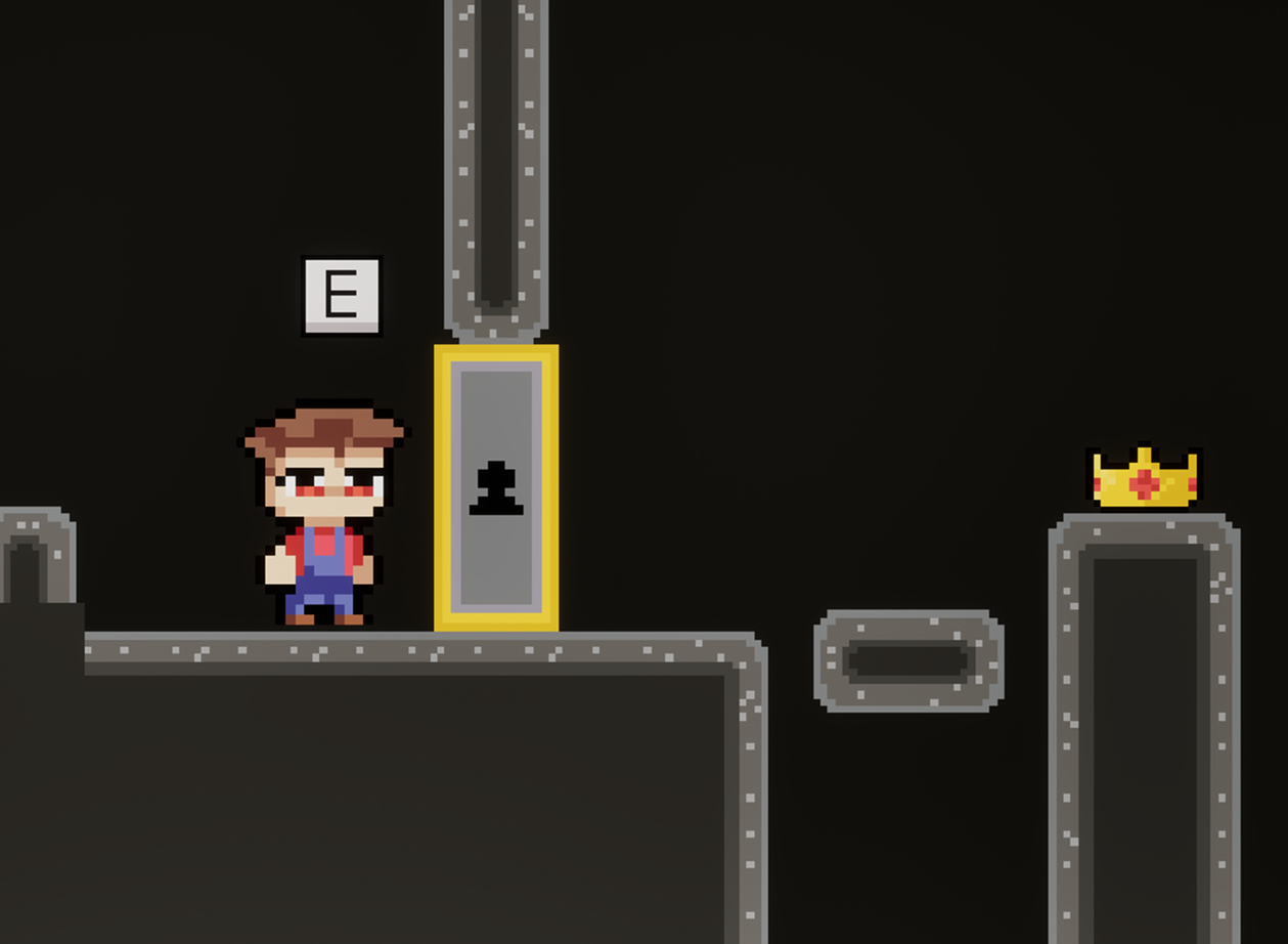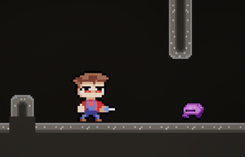 Platform Farmer is a 2D platformer in which the player explores a cave full of enemies, collects resources and tries to reach the crown hidden behind a locked door at the very bottom. To unlock it, you'll need to gather materials, trade with an NPC and upgrade your abilities — there are no shortcuts.